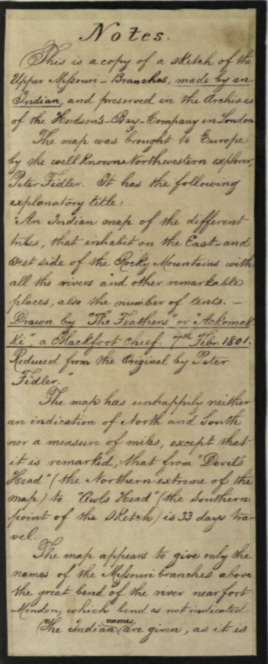 Ackomokki (Siksiká Blackfoot), Peter Fidler, J. G. Kohl, “EXAMPLE: An Indian Map of the Upper-Missouri, 1801,” The Omeka Sandbox, accessed April 17, 2026, https://www.omeka.jenniferandrella.com/items/show/1.
