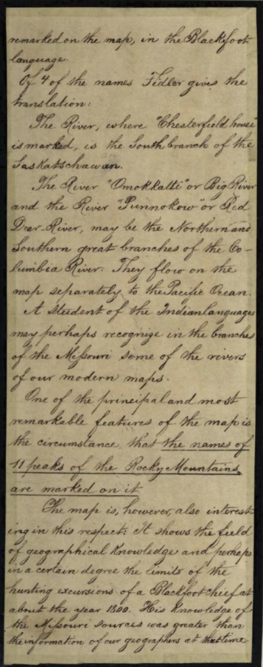 - An 1850 reproduction of an 1801 map created by Ackomokki (Siksiká Blackfoot) and Peter Fidler for the Hudson's Bay Company.